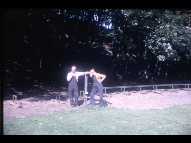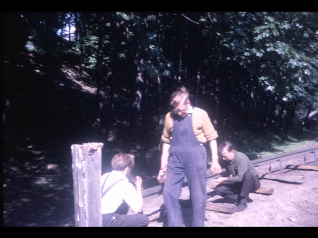 These photos are undated but show members working on the track nearest to the wood where the steaming bays are now.